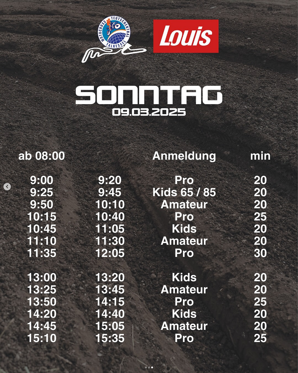 Am 8. und 9. März 2025 veranstalten wir mit Unterstützung unseres Partners LOUIS unser öffentliches Saisoneröffnungstraining. Gefahren wird getrennt in mehreren Leistungsgruppen. Die Anmeldung ist für die Kids und Pro noch möglich unter: https://teutschenthal.ticket.io Die Plätze in der Amateuer-Klasse sind leider ausgebucht.